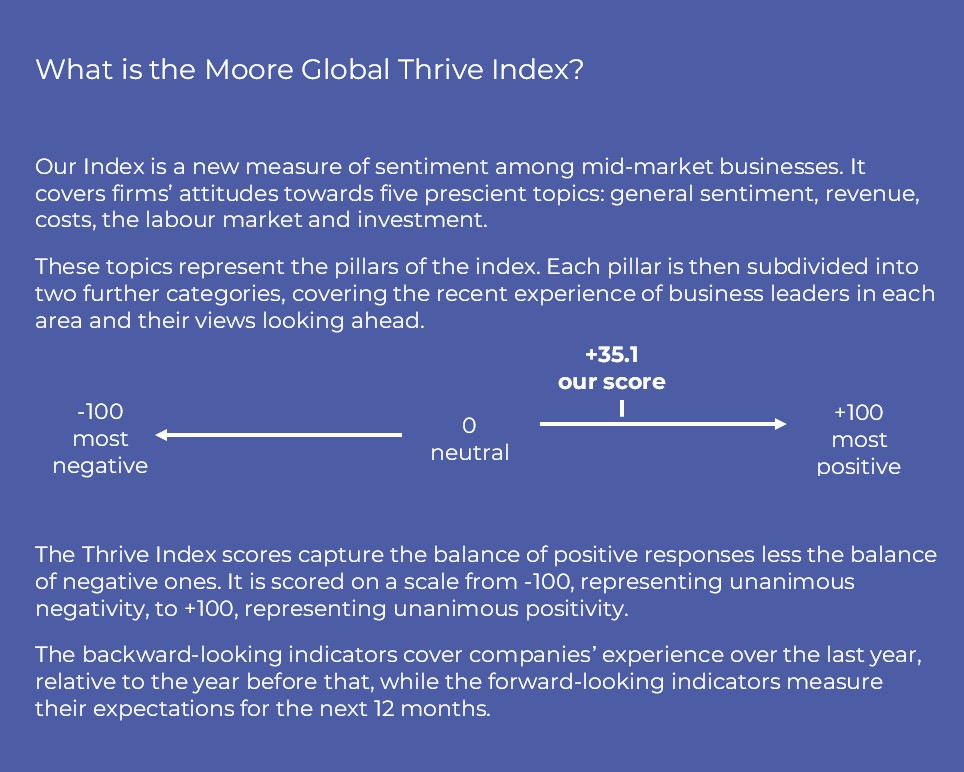 Moore Global has launched the Thrive Index, a unique insight into the concerns and strategic thinking of leaders of ambitious businesses across the world.